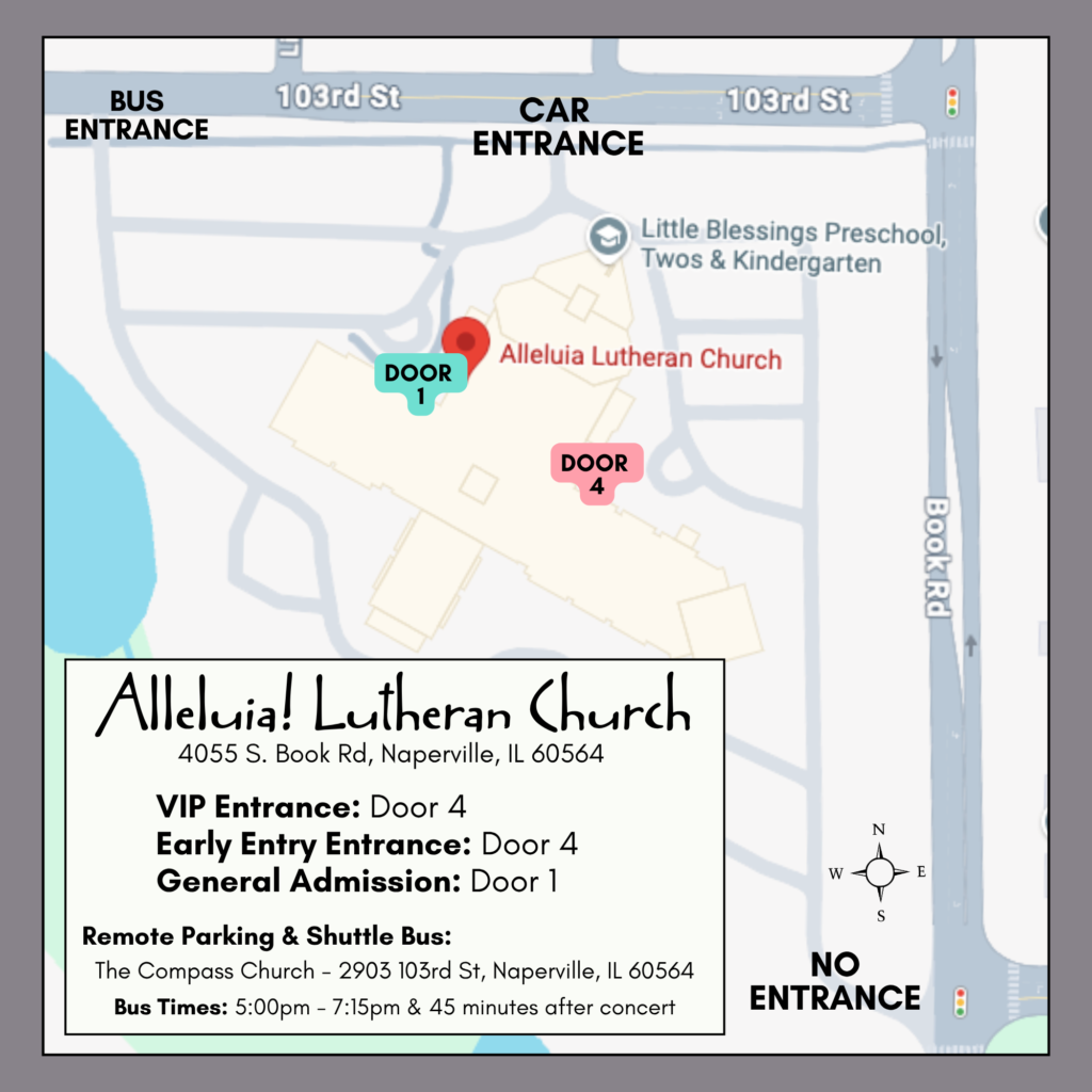 We’re so excited to see you in Naperville tonight for An Acoustic Evening with Sidewalk Prophets! To help your evening go smoothly, here are a few important details about entry and parking: